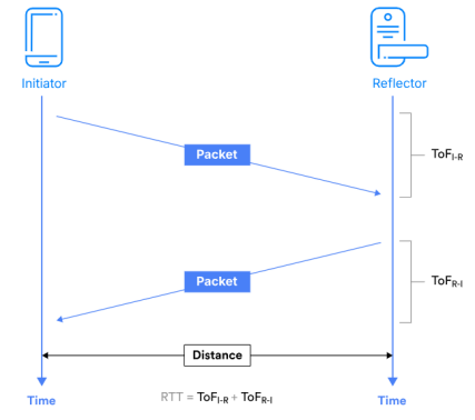 In RTT mode, devices exchange data packets and accurately record the departure and arrival time of each packet.